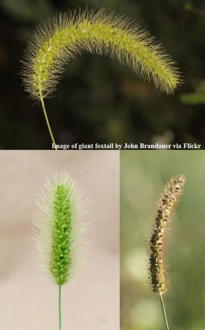 Giant foxtail is an invasive annual grass that can reach 2 to 5 ft. (0.61 to 1.5 m) in height. … Giant foxtail is native to Asia and was accidentally introduced in the United States in the 1920s as a contaminant of other grain. Plants invade disturbed sites such as roadsides, landfills, fence rows, and right of ways.