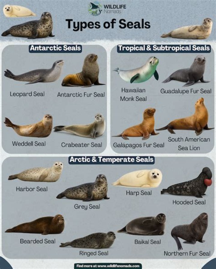 seal, any of 32 species of web-footed aquatic mammals that live chiefly in cold seas and whose body shape, round at the middle and tapered at the ends, is adapted to swift and graceful swimming.