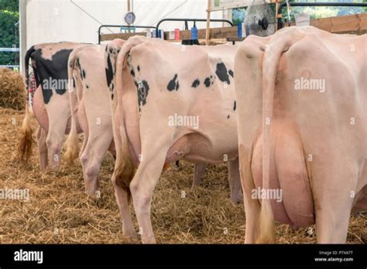 It needs to be level and the four faucets (her teats) need to be the size of and half the length of your middle finger if you wear a size 7.5 glove. Cows that have udders slipping to or below the hock are not what you want.