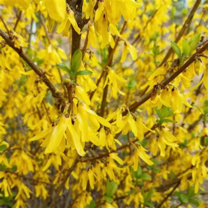 5. Forsythia. These bright golden bells bloom in spring with little maintenance needed: they just need partial sun. They are often used as a pop of color or a hedge and are non-poisonous to dogs.