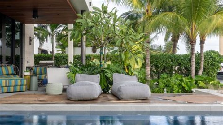 - Small palms and cycads, like sago palm, bring a tropical look to poolside gardens.