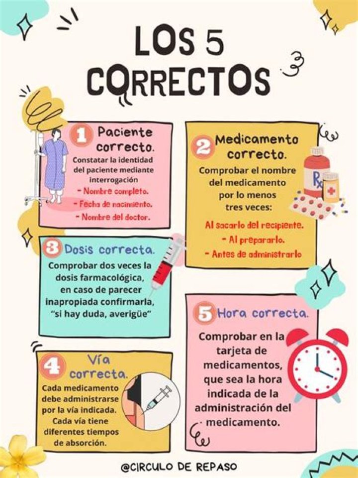 Según los expertos, el manejo de medicamentos debe partir de lo que se conoce como los cinco correctos: medicamento, correcto, paciente correcto, hora correcta, dosis correcta y preparación correcta.