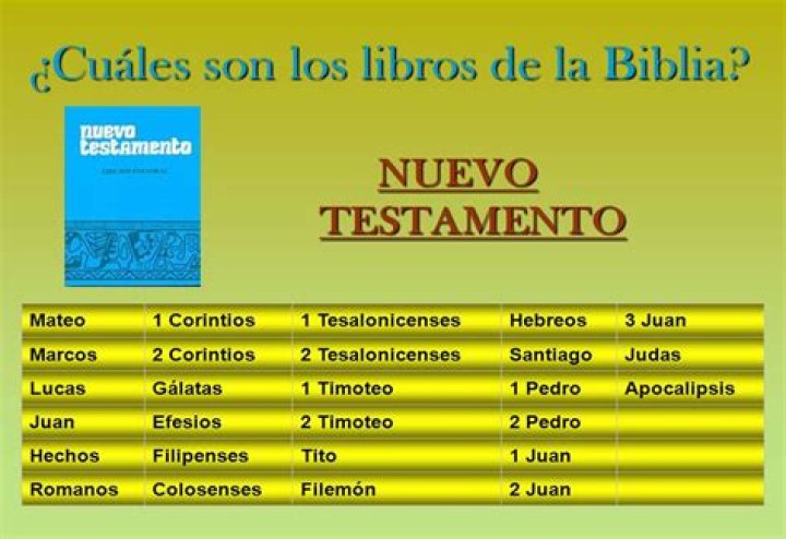 Estos cinco libros (Mateo, Marcos, Lucas, Juan Y Hechos) empiezan con el nacimiento de Jesucristo y culminan con el primer encarcelamiento del apóstol Pablo unas seis décadas después.¿Cuáles son los libros del Antiguo y Nuevo Testamento?