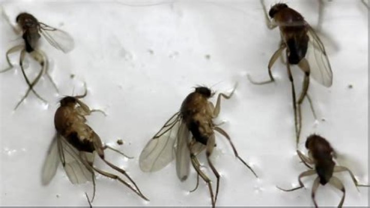 areas around water leaks: near water stains, blistered paint, etc. You’ll be looking for fungus gnat larvae which are whitish, worm-like, and legless, and about 1/4 inch long with a dark head. Adult flies will also be found in the vicinity of larval food sites.