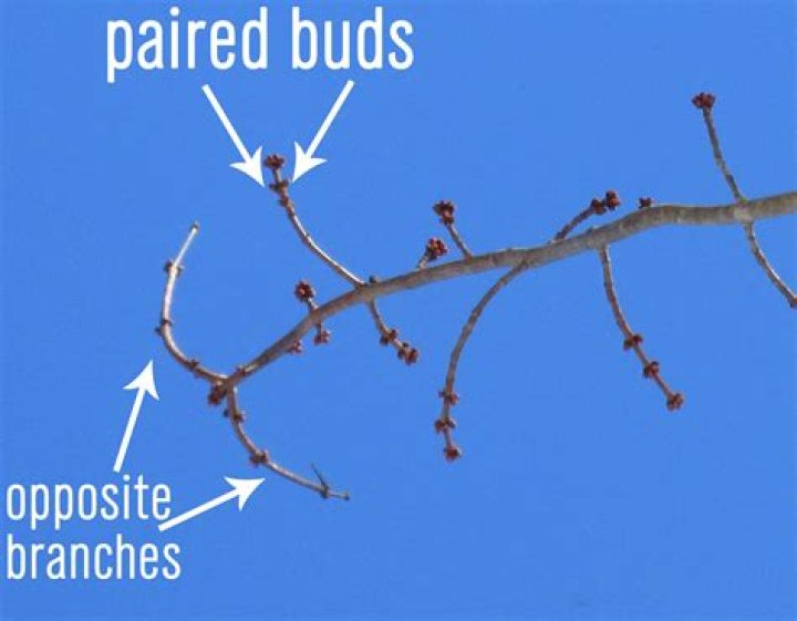 A good place to start with identification is to look at branching patterns. Maples have an opposite branching pattern, which means that twigs, leaves, buds and branches grow directly opposite from themselves.