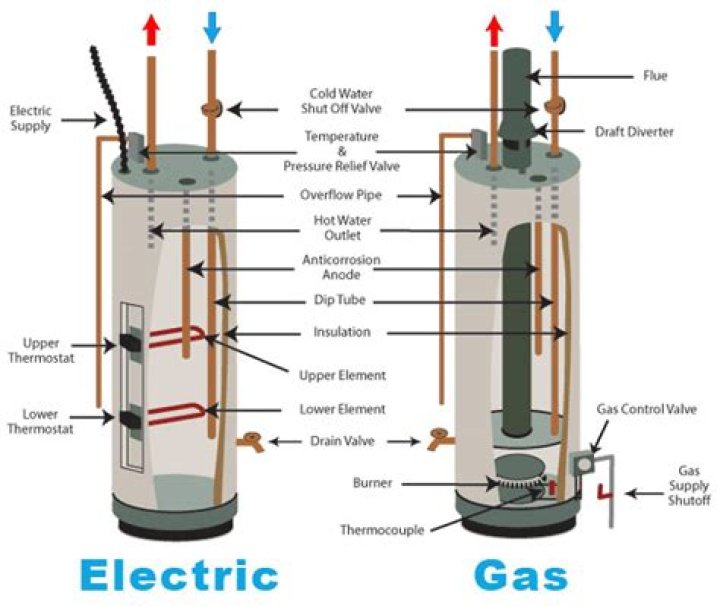 Electric and gas water heaters work differently to provide hot water to a household. While there are some water heaters that run on solar energy, oil and propane, the most common water heaters are fueled by either electricity or natural gas.