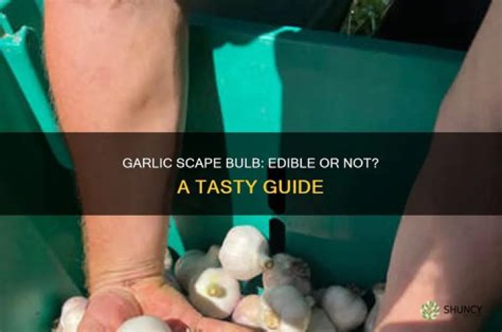 What part of garlic scapes do you eat? The entire garlic scape is edible and you can use the whole scape in pestos and other purees. However, the area from the bulb (where it bulges out) to the skinny tip can be rather tough and stringy, so I discard that portion.
