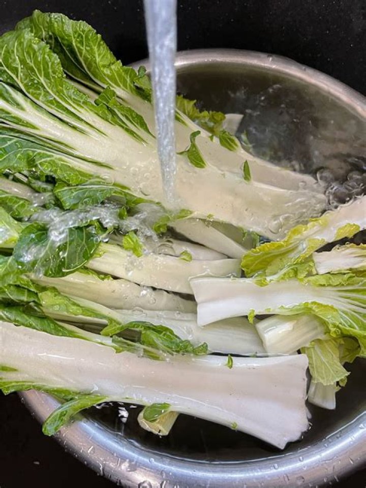 Firstly, you’ll want to choose the best products, so make sure you opt for pak choi that has firm looking and glossy leaves with an unblemished stalk. The smaller cabbages tend to be the most tender, so pick those if you’re after that in your dish. Next, it’s important to wash pak choi like you would any other cabbage.