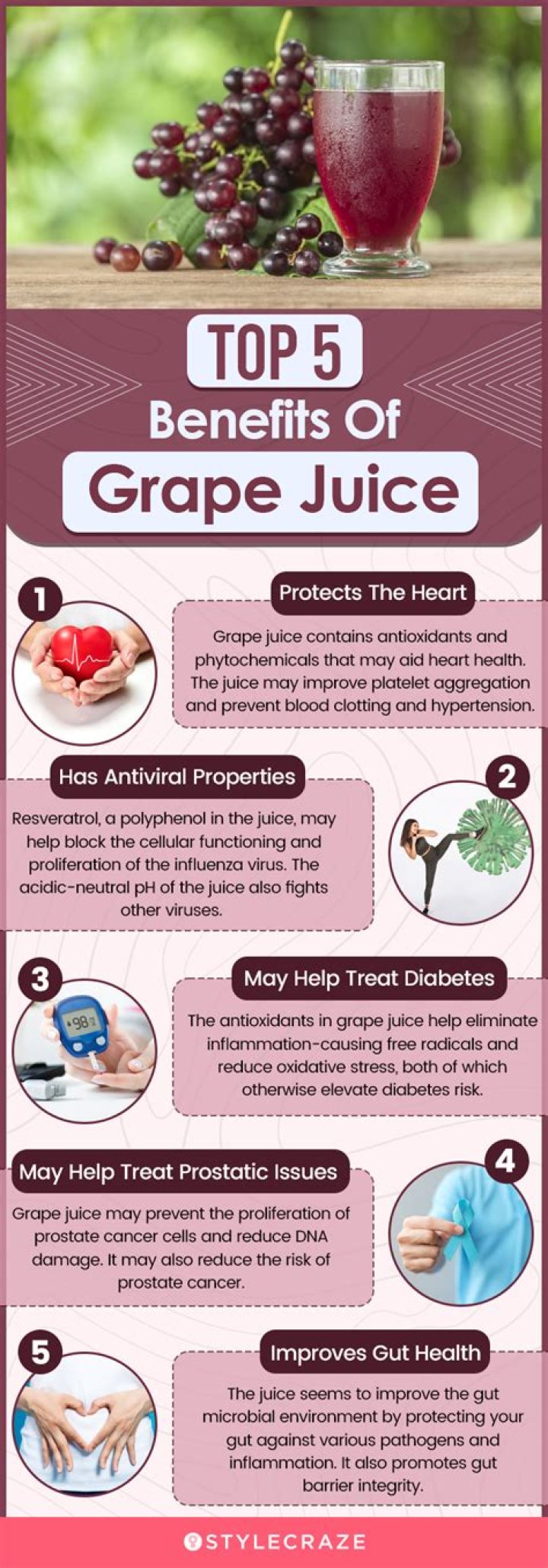 According to some Facebook pages, grape juice can cap the number of germs in your stomach that make you sick. But grape juice is too mild to significantly change your stomach pH. It is only slightly acidic and can lower the pH of your stomach a little, but this change wouldn’t last long.