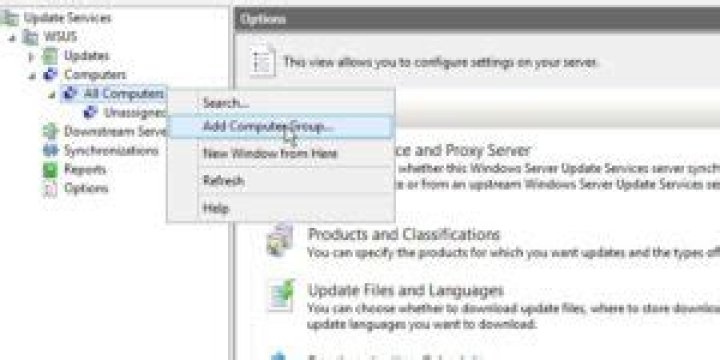 In the WSUS Administration Console, under Update Services, expand the WSUS server, expand Computers, right-click All computers, and then select Add Computer Group. In the Add Computer Group dialog, for Name, specify the name of the new group. Then select Add.