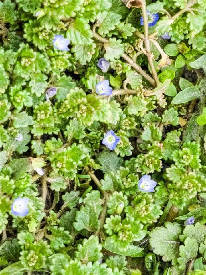 American Speedwell is a perennial plant native to most of North America, save a few of the south eastern states. This lovely groundcover has tiny periwinkle colored flowers and edible greens.