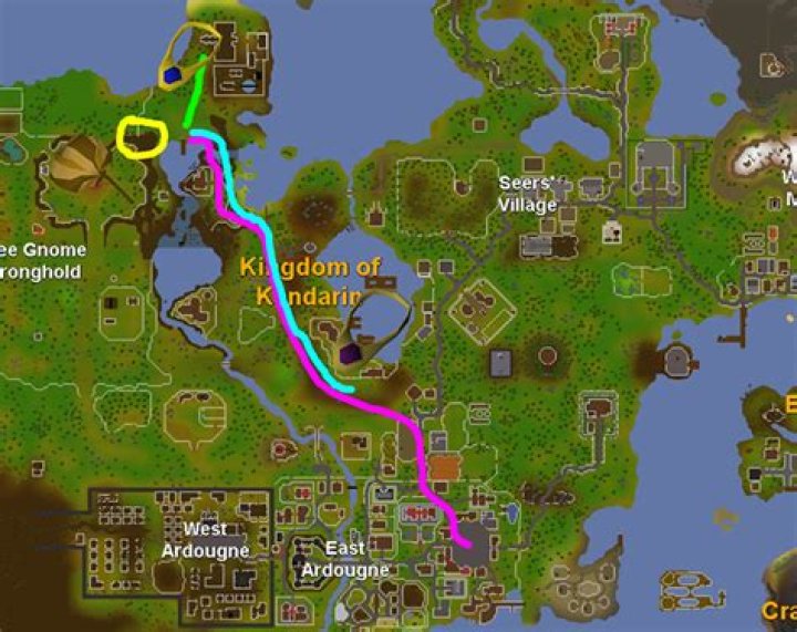 It is primarily a giant hedge maze, at the centre of which lies a civilisation. To enter the village, follow the Gnome Maze and then squeeze through the loose railing. If you talk to Elkoy, he will take you through the maze saving a bit of time. You can teleport south-west of the maze by fairy ring (ciq).