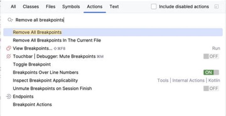 When the command is executed, enabled breakpoints retain their enabled state but are automatically skipped, effectively disabling them. … The command icon is highlighted when all breakpoints will be skipped. To restore default behavior, i.e. break the application at all enabled breakpoints, run the command again.