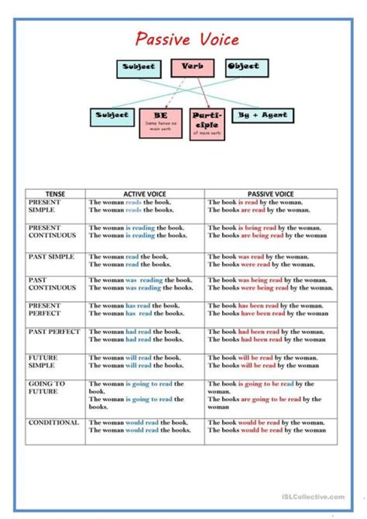 Active VoicePassive VoiceI will clean the house every Saturday.The house will be cleaned by me every Saturday.