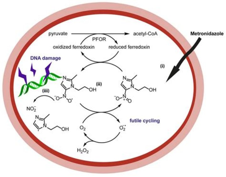 Mechanism of Action Metronidazole diffuses into the organism, inhibits protein synthesis by interacting with DNA and causing a loss of helical DNA structure and strand breakage. Therefore, it causes cell death in susceptible organisms.How quickly is metronidazole absorbed?