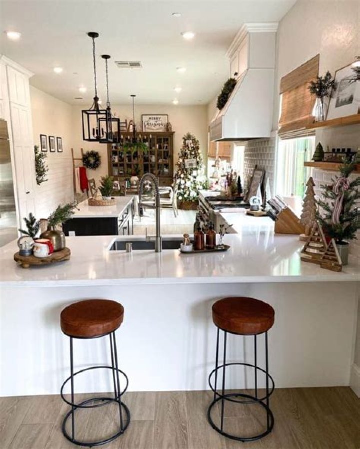 Farmhouse kitchens have a few key elements including a farmhouse sink, light colors, natural wood, and pendant lights. If you’re going the traditional route, butcher block countertops and rustic finishes are common.