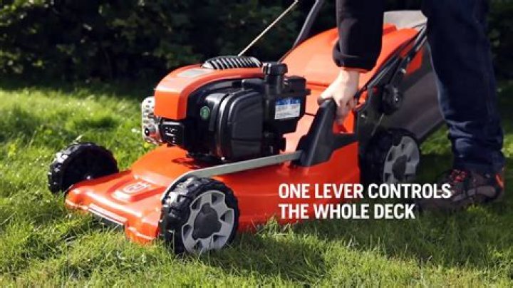 How do you raise the deck on a Husqvarna push mower?