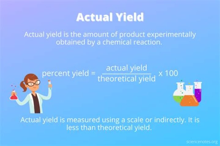 Because of this, the actual yield definition states that it should always be lower than the theoretical yield. Before commencing any laboratory work, figure out what the theoretical yield is so you know how much of your product to expect from a given amount of starting material.
