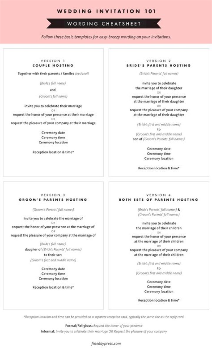 (Bride & Groom) invite you to celebrate their marriage. (Bride & Groom) invite you to their wedding ceremony. (Bride & Groom) request your presence at the ceremony and celebration of their marriage. (Bride & Groom) / We request your presence as we begin our lives as one.