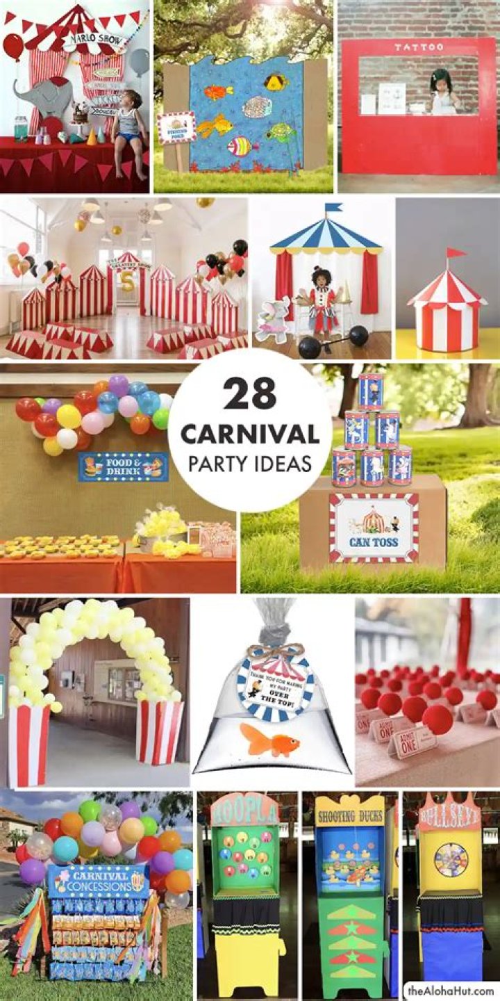 Invitations. Create fun carnival-themed invitations and include game tickets for each guest. … Guess the Jelly Beans. Encourage party guests to use their noggins with Catch My Party’s guessing game.Prize Booths. … Hand Out Hats. … Carnival Signs. … Photo Backdrop. … Game Booths. … Banner.