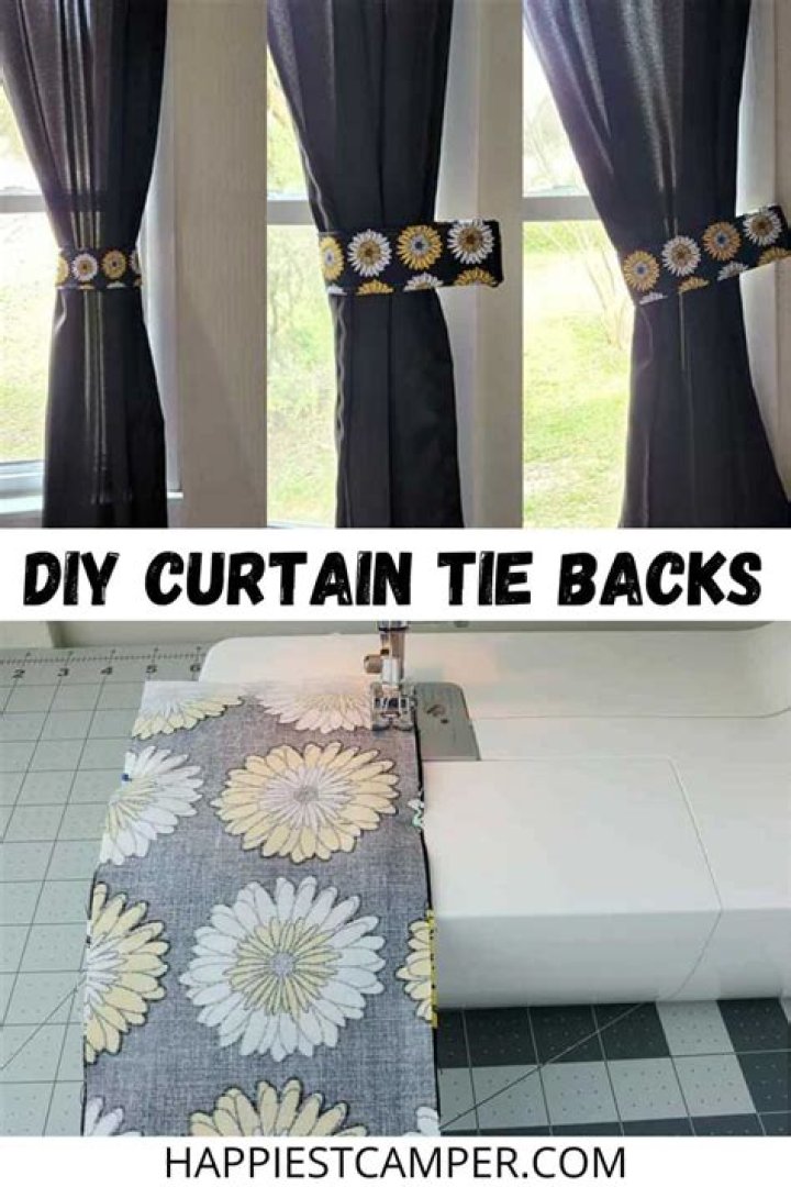 Tie Them Back Install a tieback and blouse the excess curtain over the tie creating a swagged effect. If you have lots of excess curtain, install two tiebacks on each side and create a double swag. This works best with stationary panels; it’s not appropriate for curtains that must be opened and closed frequently.
