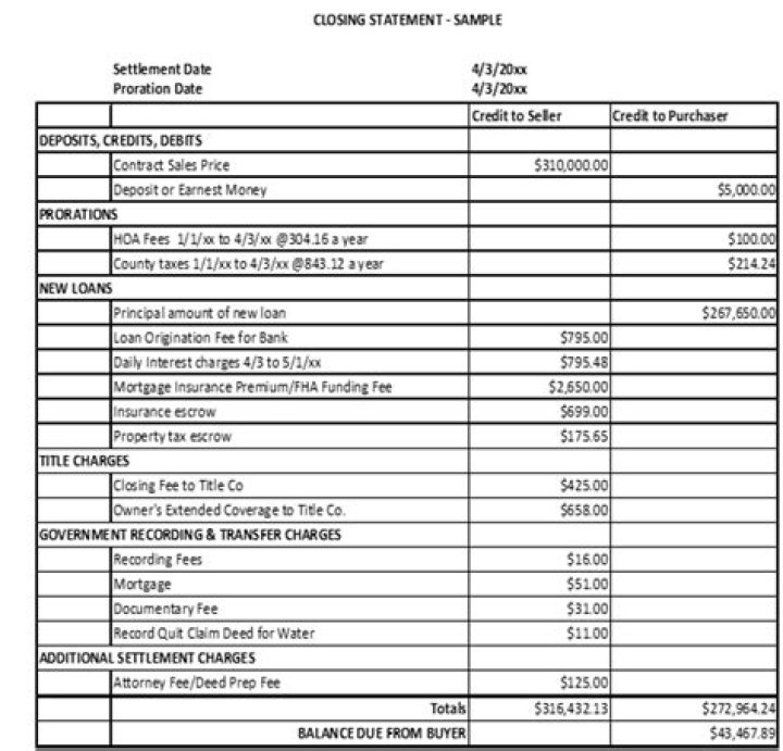 A mortgage closing statement lists all of the costs and fees associated with the loan, as well as the total amount and payment schedule. A closing statement or credit agreement is provided with any type of loan, often with the application itself.