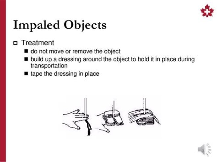 Here’s the #1 rule: Do not remove the impaled object.. Pulling out the object can damage nerves and blood vessels and make the wound much worse. Instead, you should: Call 911 and get your first aid kit.How do you treat embedded objects?