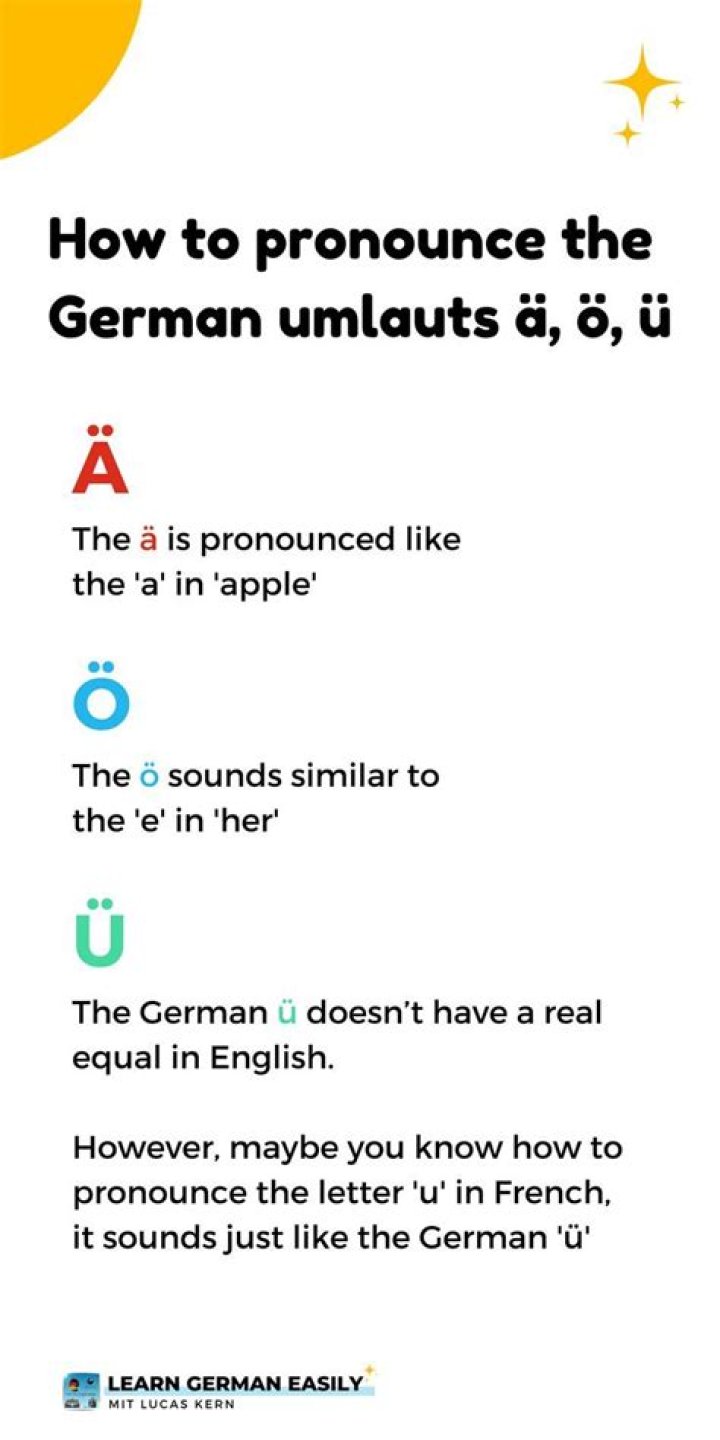German has three extra vowels: ä, ö, and ü. The German word for those curious double dots over the vowels is Umlaut (oom-lout) (umlaut). Umlauts slightly alter the sound of the vowels a, o, and u, as outlined in this table. These sounds have no equivalent in English.How do you type German on a German keyboard?