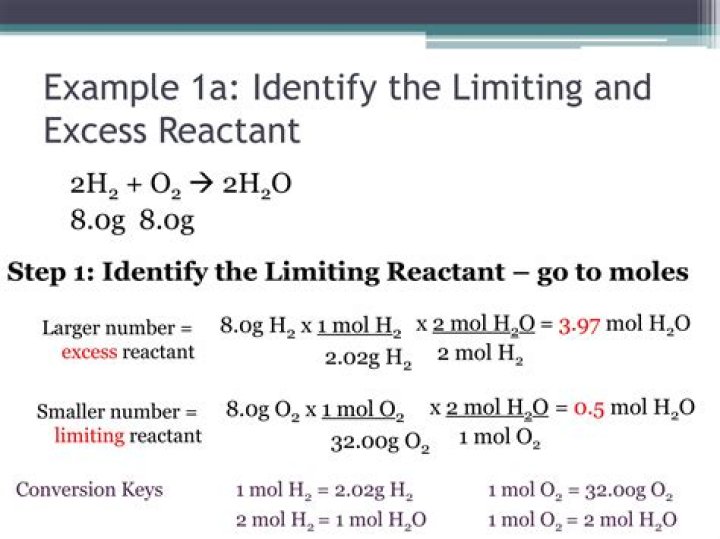 Step 1: Write out the balanced equation. Step 2: Convert the given amounts of all reactants into moles. Step 3: Divide the moles of each reactant by its coefficient in the balanced equation. The component with the lowest resulting number is the limiting reactant.