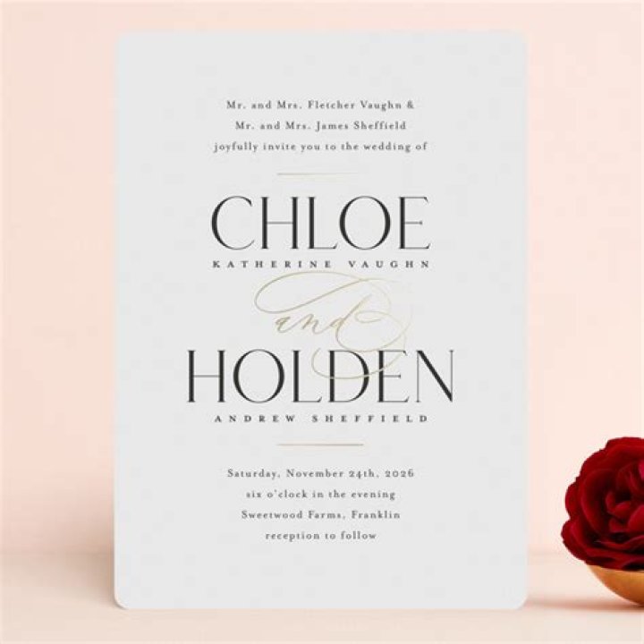 When writing wedding invitation wording from the bride’s parents, pay attention to first and last names. Since the bride’s parents’ first names and last name are mentioned, only the bride’s first and middle name should appear on the invitation. However, the groom’s first, middle and last names should be included.