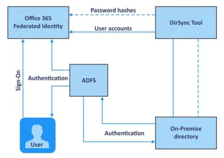 Office 365 uses an Active Directory environment wherein a dedicated domain is created on the cloud for each user’s Office 365 subscription. ADFS is used here by setting up directory synchronization (DirSyc tool) that creates accounts in Microsoft’s domain matching the accounts within the user’s domain.