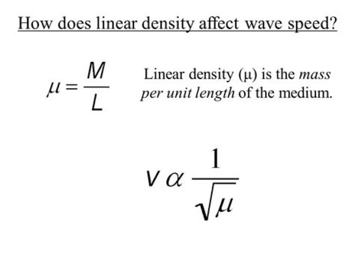 The speed of a wave depends upon the linear density of the rope through which it moves. Decreasing the linear density increases the speed. The relatonship is that speed is inversely proportional to the square root of linear density.How does linear density affect frequency?
