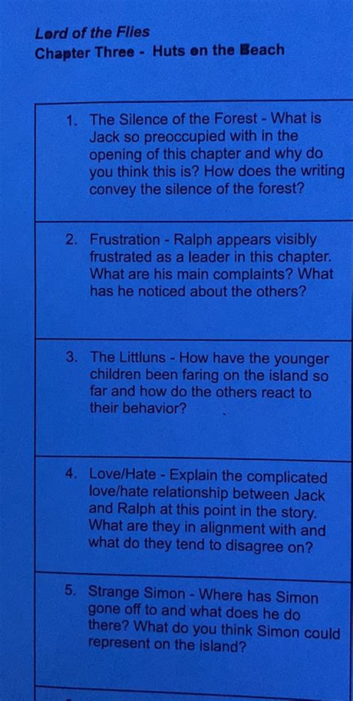 By chapter three of the novel, however, none of the boys are sleeping peacefully at night, especially the littluns. All Jack wants to do is hunt, but Ralph tries to convince him of their need for shelters.What does chapter 3 reveal about Simon?