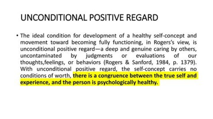 Using Unconditional Positive Regard For positive regard to be unconditional in the therapeutic relationship, the therapist must accept all of the client’s feelings and experiences equally and avoid making judgements about their value or validity.Do you think unconditional positive regard is important for healthy personality development?