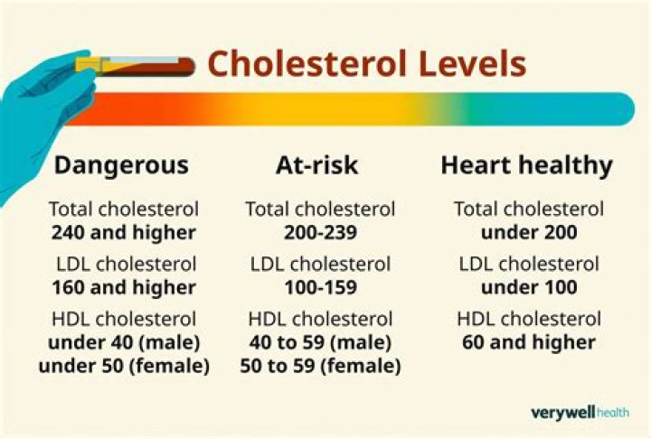 Total cholesterolHDL cholesterolGoodLess than 200 (but the lower the better)Ideal is 60 or higher; 40 or higher for men and 50 or higher for women is acceptableBorderline to moderately elevated200–239n/aHigh240 or higher60 or higherLown/aless than 40 for men and less than 50 for womenHow can I lower my cholesterol quickly?