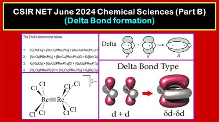 In chemistry, delta bonds (δ bonds) are covalent chemical bonds, where four lobes of one involved atomic orbital overlap four lobes of the other involved atomic orbital. … The first compound identified as having a δ bond was potassium octachlorodirhenate(III).
