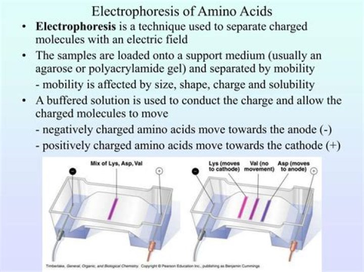 Electrophoresis is a separation technique based on the movement of charged ions under the influence of an electrical field. This technique is primarily used for the separation of amino acids and peptides on the basis of their charge. … The amino acids with a net positive charge will migrate toward the negative electrode.
