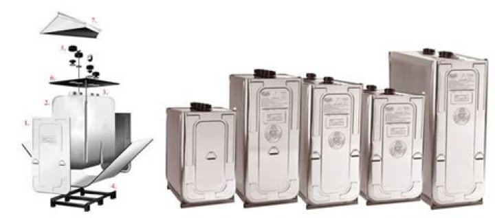Made of 2.3 mm thick steel, with a fuel outlet located at the bottom of one end. 100% fibreglass and resin construction with outlet connection at the base or on top, for indoor or outdoor use.