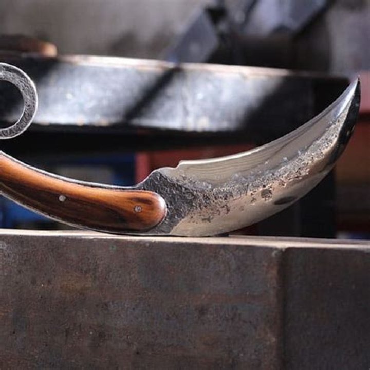 Curved knives are easier to forge than strait ones due to using the curved deformation from edge bevelling to produce the final shape.