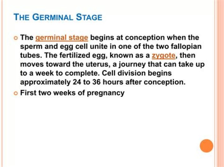This union marks the beginning of the prenatal period, which in humans encompasses three distinct stages: (1) the pre-embryonic stage, the first two weeks of development, which is a period of cell division and initial differentiation (cell maturation), (2) the embryonic period, or period of organogenesis, which lasts …What's after the germinal stage?