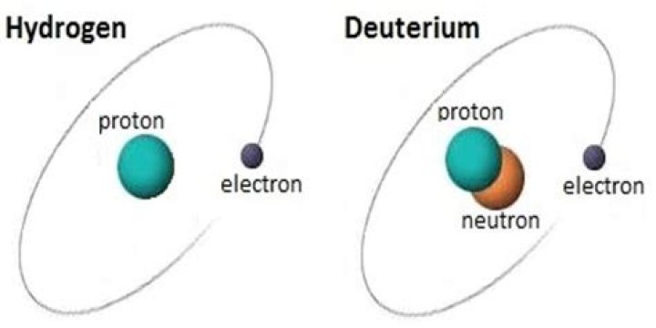 Deuterium is also known as “heavy hydrogen” because of the extra neutron in the atomic nucleus. [Hydrogen has a third isotope called tritium, with a proton and two neutrons, but it radioactively decays in a short time and is unimportant for the observations described here.]