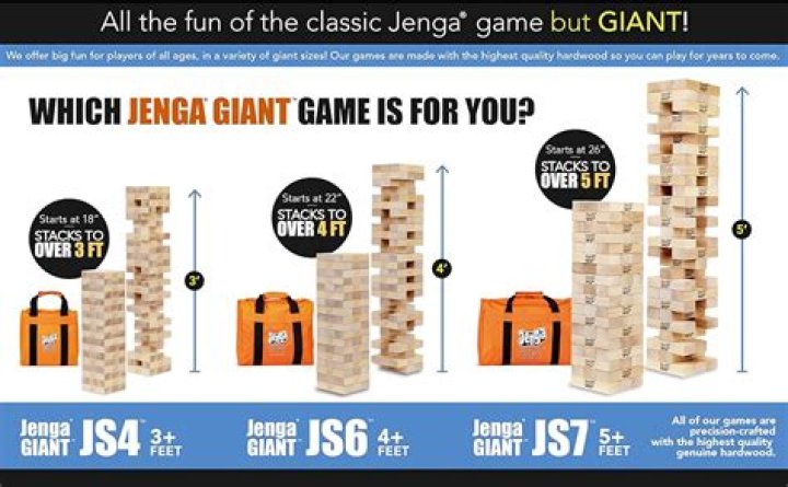 Jenga GIANT JS7 Hardwood Game is the biggest authentic hardwood Jenga brand game ever sold. Starts at 61 cm high at setup and can stack to over 1.5 meters high in play!
