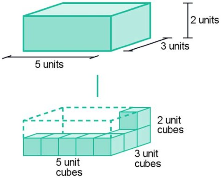 Finding Volume of Prisms Using Unit Cubes Volume is the amount of space inside a solid figure. These cubes make up a rectangular prism. The cubes represent the volume of the prism. This prism is five cubes by two cubes by one cube.