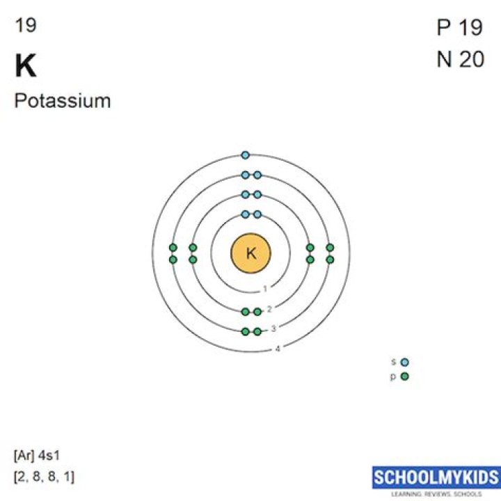 So if you look for potassium (symbol K in the periodic table), you will find that it has the atomic number of 19. This tells you that potassium has 19 protons and – since the number of protons is the same as the number of electrons- also 19 electrons.Why does potassium only have 1 valence electron?