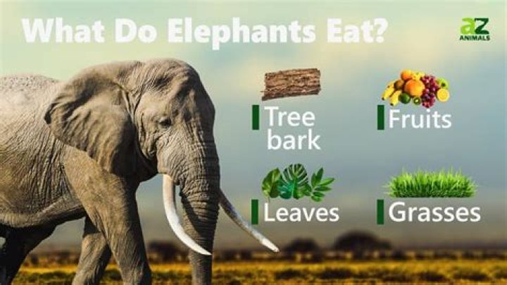 Elephants are big vegetarians. In the wild, they eat a wide variety of plants, from savannah grasses, shrubs, and herbs, to woody trees, bark, and fruits. Their diet depends on what’s available in their habitat in a given season.