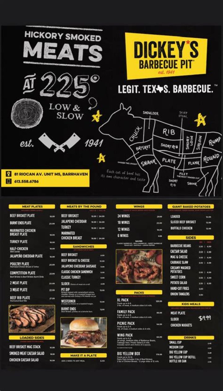 About Dickey’s Barbecue Pit For more than 80 years, Dickey’s Barbecue Pit has been the place to go for mouth-watering, slow-smoked Texas-style BBQ. Customers around the world come to us for favorites such as smoked brisket, chicken, ribs, pork, wings and sides that range from jalapeno beans to macaroni and cheese.