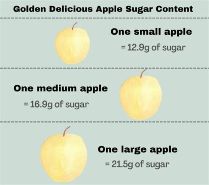 An apple a day… counts as two servings of fruit. Royal gala and honey crisp can contain 19 grams of sugar, but green apples, like granny smith, contain 9 grams. This tropical fruit contains 15 grams of sugar in a half cup – that’s about four to five lychee fruit.Which apple has less sugar?