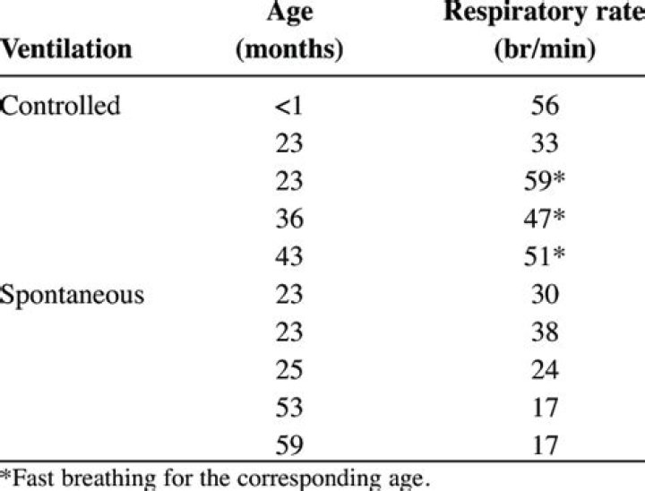 How many times per minute should a child be ventilated?The rescuer delivering the rescue breaths (ventilations) should give 8 to 10 breaths per minute for infants and should be careful to avoid delivering an excessive number of ventilations. A ventilation rate of about 8 to 10 breaths per minute will be the equivalent of giving 1 breath about every 6 to 8 seconds.