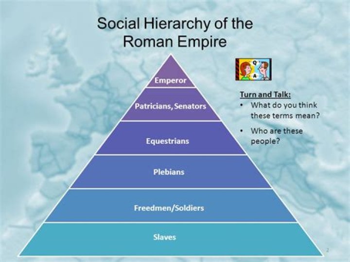 Ancient Rome was made up of a structure called a social hierarchy, or division of people into differently-ranked groups depending on their jobs and family. The emperor was at the top of this structure, followed by the wealthy landowners, the common people, and the slaves (who were the lowest class).