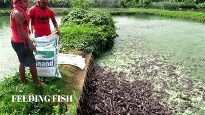 How often should you feed fish in a farm pond?